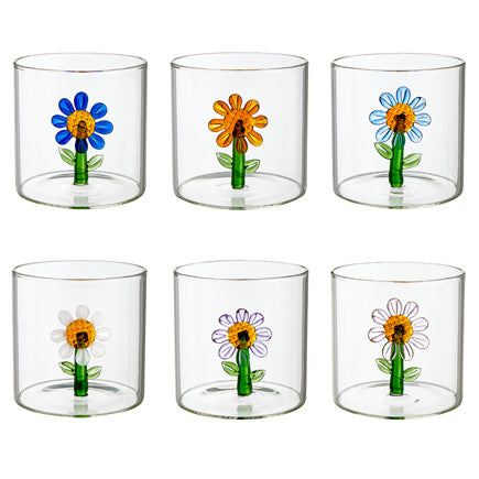 MONTEMAGGI Set 6 Pezzi Tumbler Bicchieri con Fiori 8x8cm Vetro Borosilicato
