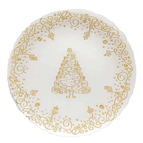 EASY LIFE Piatto Natalizio Bianco con Decoro Oro 33cm Vetro