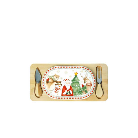 BRANDANI Racconti Tagliere Natalizio con 2 Coltelli 34x16cm Porcellana