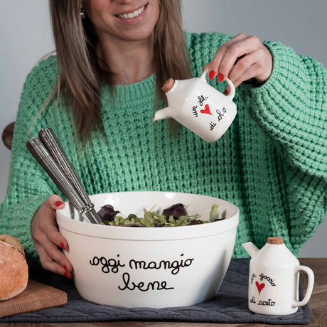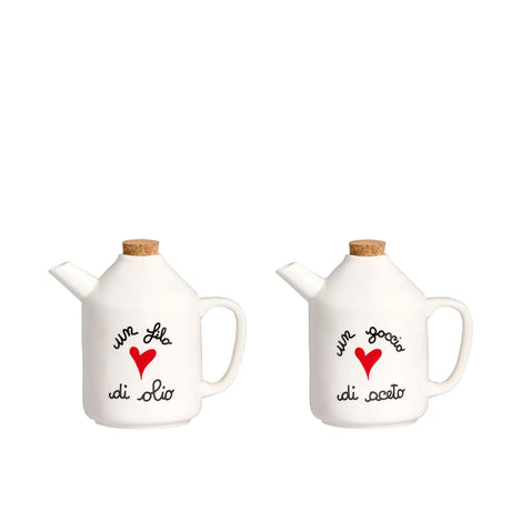 SIMPLE DAY Set Olio e Aceto Oliera Acetiera Un Filo d'Olio Un Goccio d'Aceto 250ml Gres