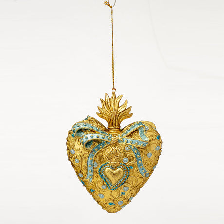 PALAIS ROYAL Pendaglio per Albero di Natale Cuore 14cm Resina Oro e Azzurro Decorazione Natalizia