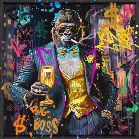 PALAIS ROYAL Quadro Stampa su Tela con LED Gorilla Oro 80x80cm