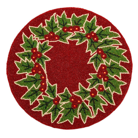 PALAIS ROYAL Tovaglietta Natalizia Rotonda con Agrifoglio Set 2 Pezzi Rosso Verde 35cm