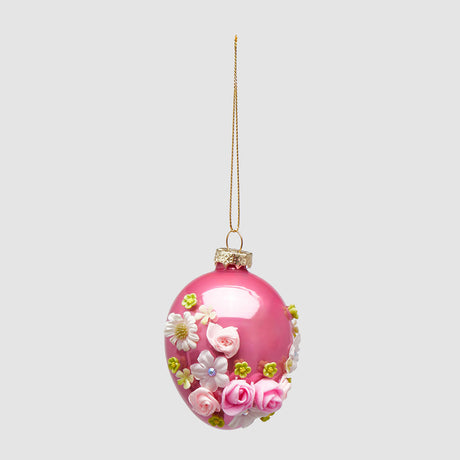 EDG Enzo De Gasperi Uovo di Pasqua da Appendere con Fiori 8cm in Vetro Rosa