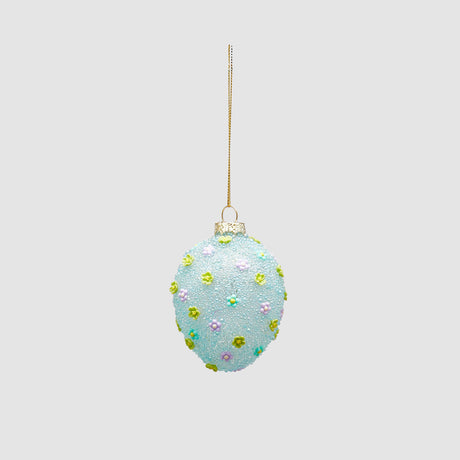 EDG Enzo De Gasperi Decorazione di Pasqua Uovo con Perle e Nappa 11x8cm Azzurro Vetro