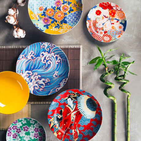 EXCELSA Kimono Servizio Tavola Piatti Set 18 Pezzi Porcellana Multicolore Stile Giapponese