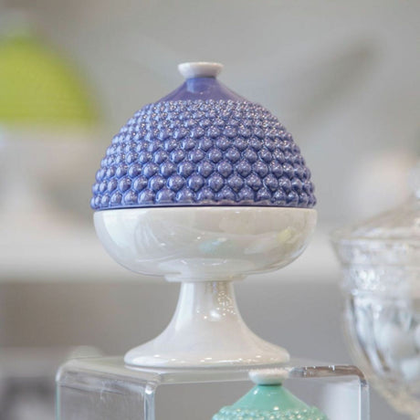 EMÒ ITALIA Scatola Portaoggetti con Coperchio Pumo Pugliese Blu Bianco Ceramica 11 cm