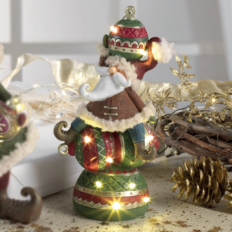 MASCAGNI CASA Decorazione Natalizia Babbo Natale in Resina con Luci LED 13x26cm Verde Rosso
