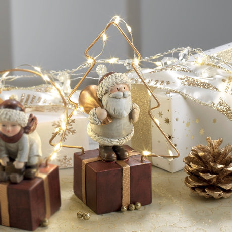 MASCAGNI CASA Babbo Natale in Resina con Abete LED 16cm Decorazione Natalizia