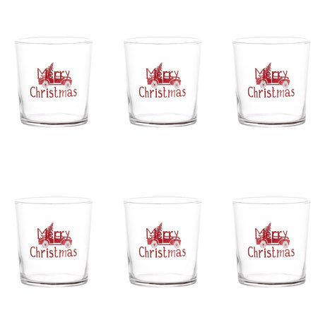 SIMPLE DAY Set 6 Bicchieri Merry Christmas 350ml Rosso Vetro