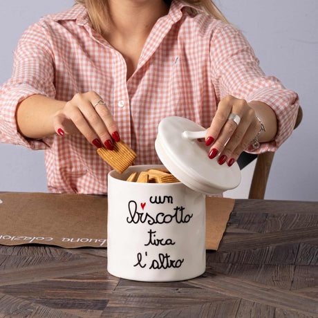 SIMPLE DAY Contenitore Barattolo Biscottiera Un Biscotto Tira L'Altro 21x12cm Gres