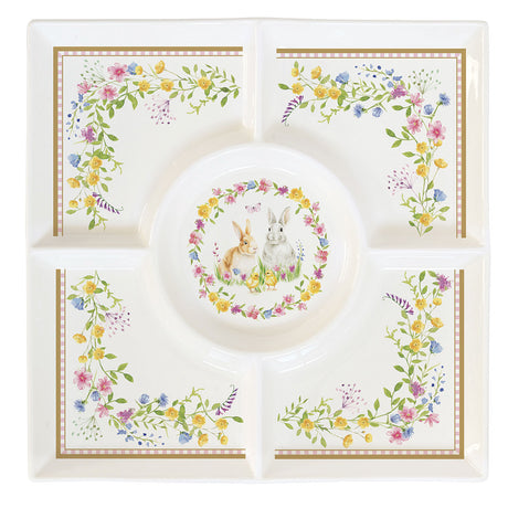 EASY LIFE Happy Easter Antipastiera 25x25 Porcellana Tavola di Pasqua