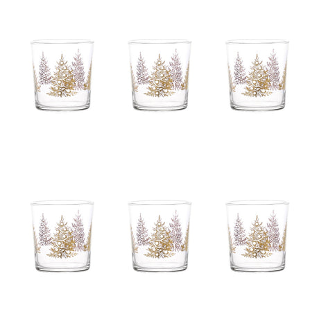 SIMPLE DAY Set 6 Bicchieri Alberi Natalizi 350ml Oro Vetro
