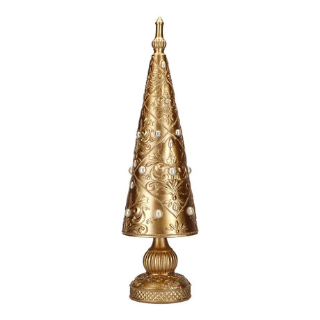 TIMSTOR - Albero di Natale Cono con Perline Decorazione Natalizia Oro 41cm Resina