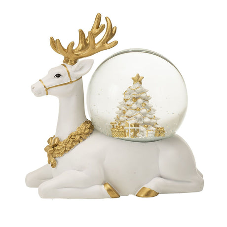 NOEL by Lamart Carillon Globo di Neve con Musica 18cm Renna Bianco Oro Poliresina