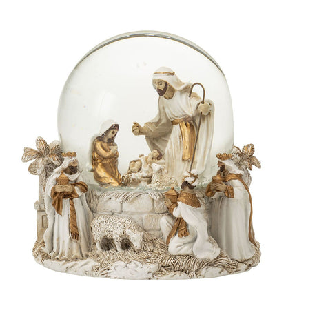 NOEL by Lamart Carillon Globo di Neve con Musica 16cm Natività Bianco Oro Poliresina