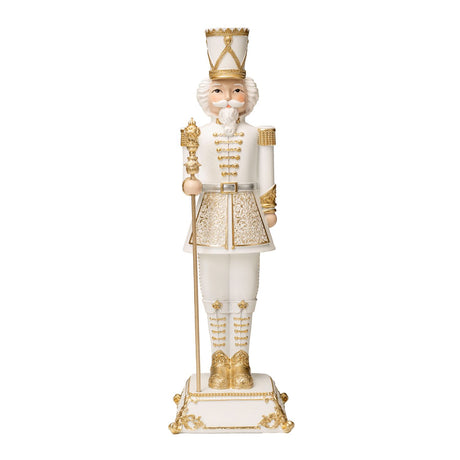 NOEL by Lamart Schiaccianoci Soldatino in Poliresina Decorazione di Natale 28cm Bianco Oro