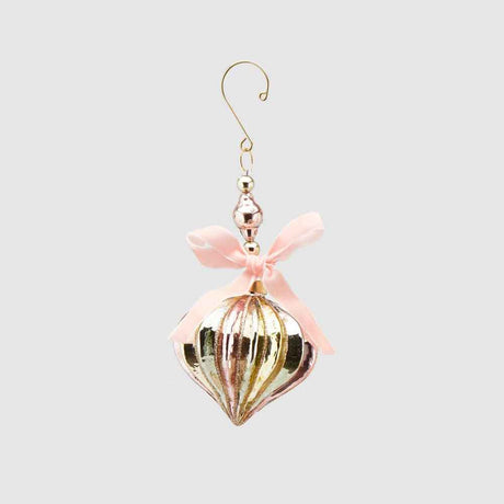 EDG Enzo De Gasperi Pendaglio Pallina per Albero di Natale con Fiocco Rosa 10cm Vetro Oro