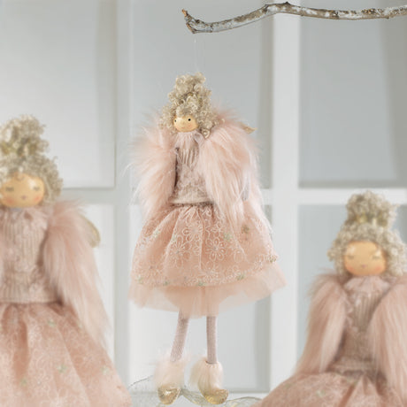 MASCAGNI CASA Christmas Angel Pendant to Hang in Fabric 36cm Pink