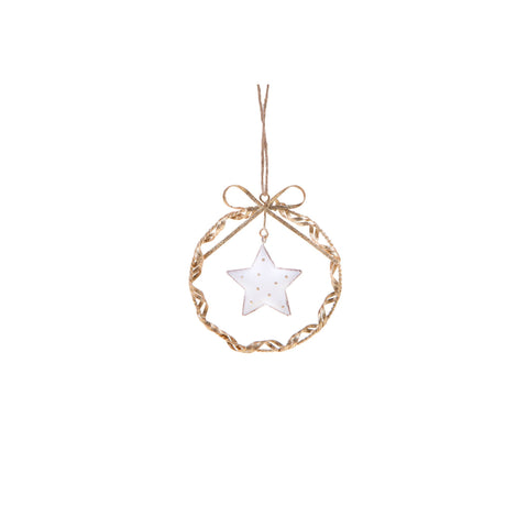 BIANCHI DINO - Crown Pendant with Star 11 cm Gold Metal Christmas Decoration