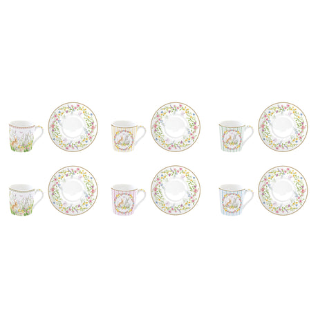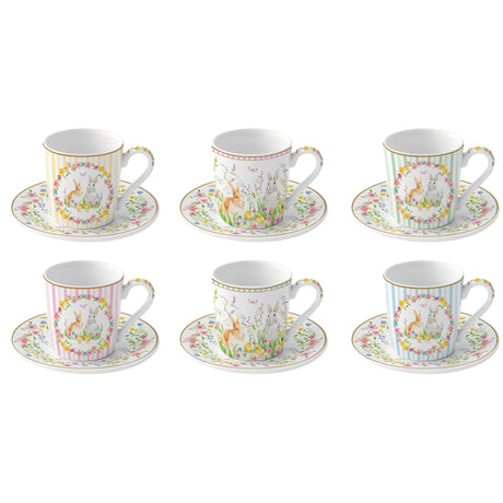 EASY LIFE Happy Easter Set 6 Tazzine Caffè Espresso con Piattini 100ml Porcellana
