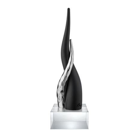BONGELLI PREZIOSI Cornetto Corni Intrecciati Base Cristallo 20cm Nero Argento Marmorino