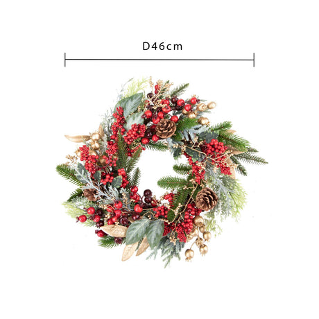 BIANCHI DINO Wreath Garland with Synthetic Berries 46cm Red Gold