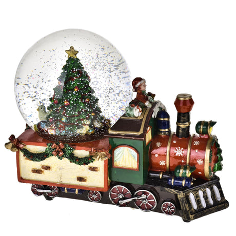 BIANCHI DINO - Music Box Snowball Locomotive Christmas Decoration 25.5 cm Resin
