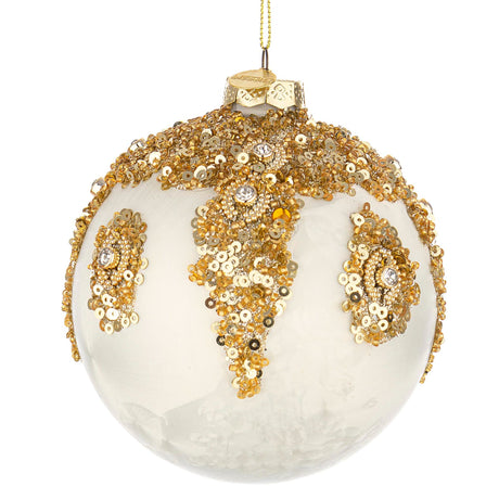 BIZZOTTO Sphere Christmas Tree Bauble in Glass Melissa Sequins 10cm White Gold
