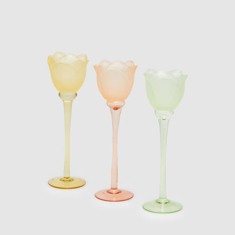EDG Enzo De Gasperi Portacandela Tulipano Satinato 28x8,5cm Pesca Vetro