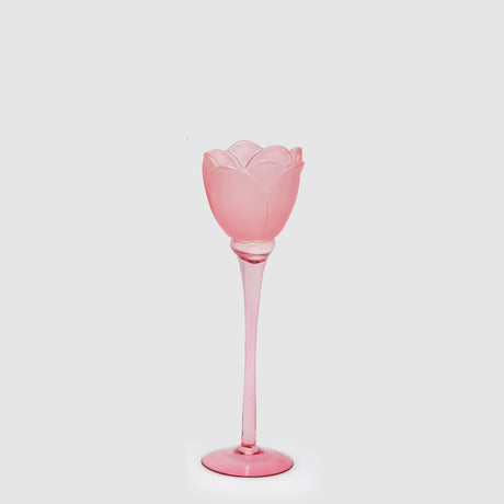 EDG Enzo De Gasperi Portacandela Tulipano Satinato 28x8,5cm Rosa Vetro