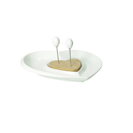 BRANDANI Antipastiera Love Porcellana e Bamboo con 2 Forchette 23x22,5cm