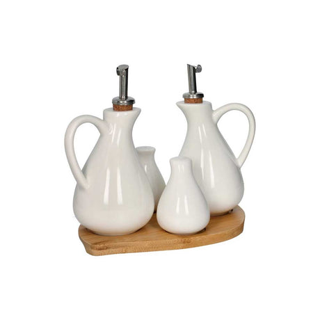 BRANDANI Olio Aceto Porcellana con Vassoietto Bamboo 19,5x17cm