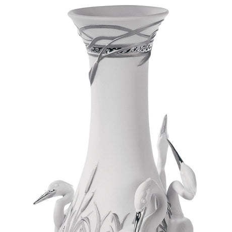 LLADRO' Vaso Aironi Cinerini Lustro Argento 35x17cm Porcellana