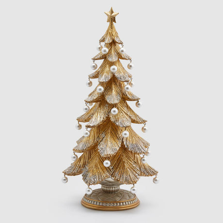 EDG Enzo De Gasperi Pino Albero di Natale con Perle 46x22cm Resina Decorazione Natalizia