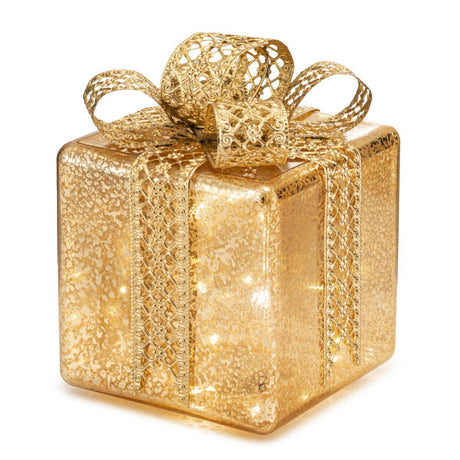 PALAIS ROYAL Pacco Regalo Oro con LED Decorazione Natalizia 15x22cm Vetro