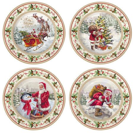 EASY LIFE Christmas Time Set 4 Piatti Dessert 19cm Porcellana Tavola di Natale