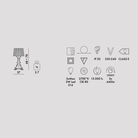 KARTELL Bourgie Table Lamp Silver Metal 78cm Polycarbonate 2.0