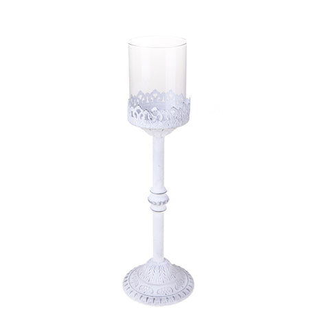 BIANCHI DINO Candlestick Single Metal Candelabra 42cm Antique White