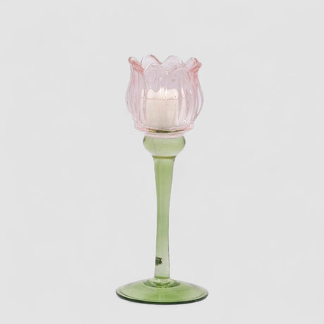 EDG Enzo De Gasperi Portacandela Tulipano 22cm Rosa Vetro