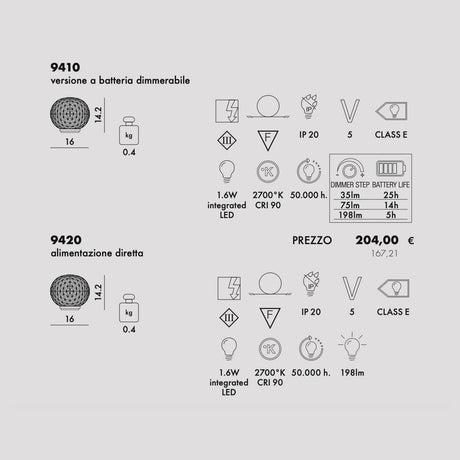 KARTELL Mini Planet Battery Version Transparent Table Lamp 16x14cm PMMA