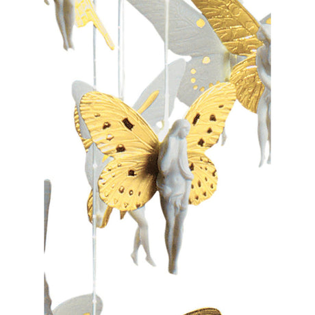 LLADRO' Lampadario Firefly Rosa e Oro 170x45cm Porcellana