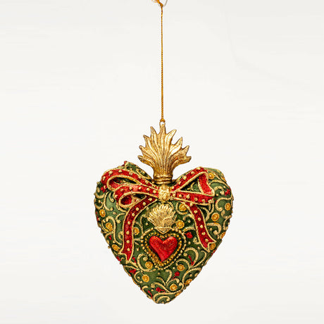PALAIS ROYAL Pendaglio per Albero di Natale Cuore 14cm Resina Verde Oro Decorazione Natalizia