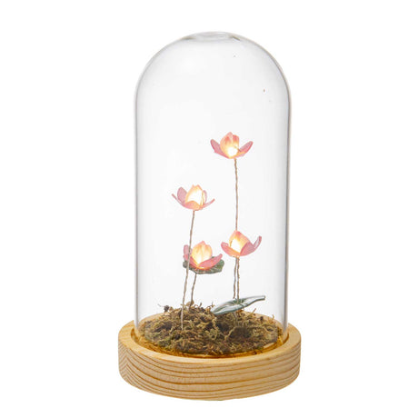 PALAIS ROYAL Cupola in Vetro con Fiori di Loto e LED 17cm Base in Legno