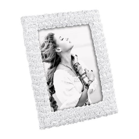 MASCAGNI CASA Portafoto Cornice con Roselline 15x20cm Bianco Resina