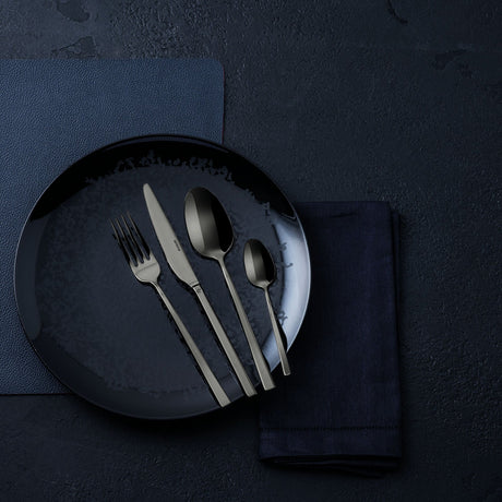 SAMBONET - Rock Black Nero Table Service Cutlery Set 24 Pieces Monobloc PVD 52762K81