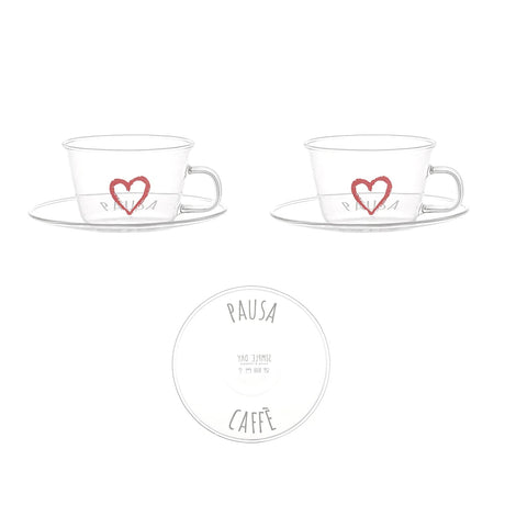 SIMPLE DAY Coffee Cup with Saucer Set 2 Pieces Coffee Break 100ml Glass
