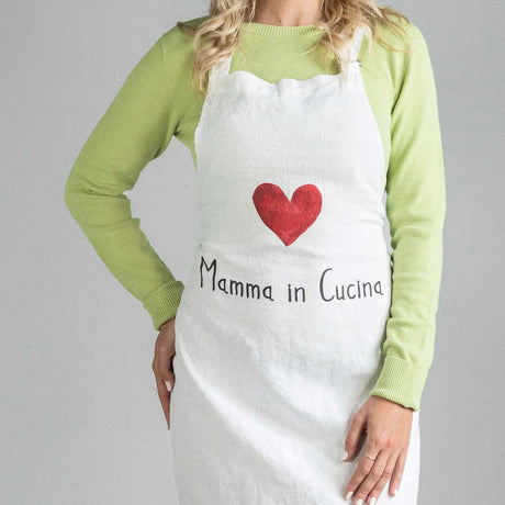 SIMPLE DAY Grembiule Mamma In Cucina 70x85cm Lino 100% Bianco