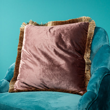 WERNS Velvet Cushion with Fringes 45x45cm Antique Pink