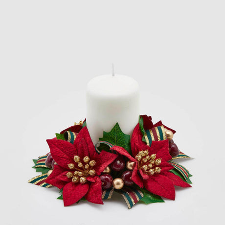 EDG Wreath Christmas Star Centerpiece Round Candle Decoration 16cm Red